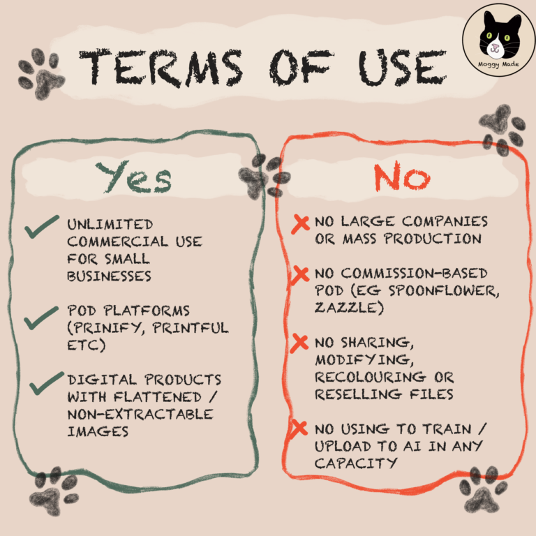 Hello! I’m the human behind Moggy Made… I draw cats, a lot of cats, and turn them into seamless patterns designed to bring a little joy to your creative projects